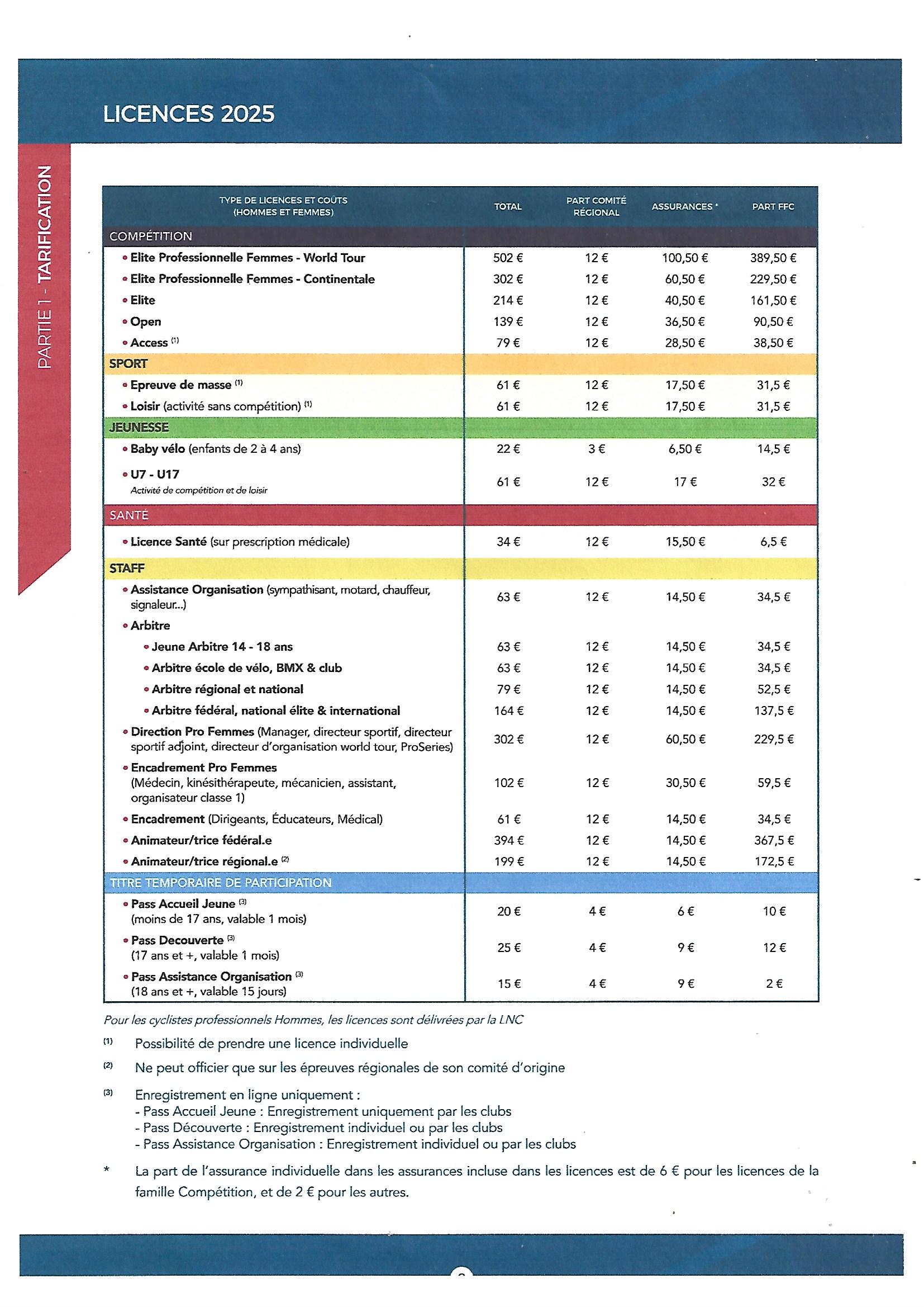 Le tarif ffc des licences pour 2026 est sorti augmentation des rarifs de 6 euros, 2 euros pour la ffc et 4 euros pour les assurances la part du comité Nouvelle Aquitaine ne bouge pas. Pour info Une licence pour pratiquer l'ufolep est de 76 euros contre 85 en acces.